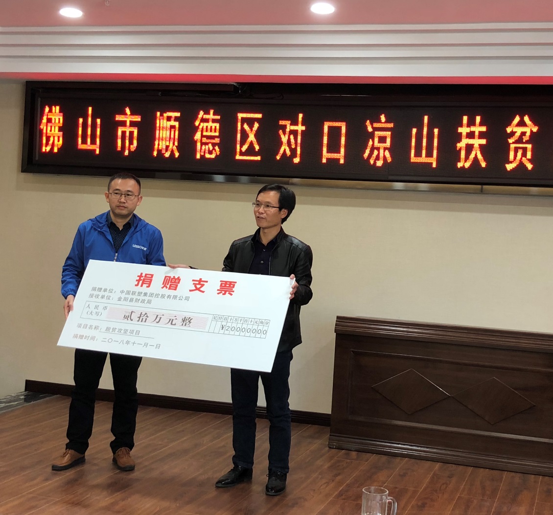 會(huì)上,袁秘書介紹了中國聯(lián)塑集團(tuán)概況及履行企業(yè)社會(huì)責(zé)任等情況。2018年,中國聯(lián)塑以實(shí)際行動(dòng)支持涼山州的教育事業(yè),并對口援助精準(zhǔn)扶貧項(xiàng)目,截至10月份,中國聯(lián)塑累計(jì)捐贈(zèng)物資和捐款達(dá)110多萬元。2018年3月,四川聯(lián)塑捐贈(zèng)涼山州布拖縣九都鄉(xiāng)中心校安全飲水工程項(xiàng)目管材、管件等物資價(jià)值18萬余元。10月份,四川聯(lián)塑為布拖縣拉達(dá)鄉(xiāng)中心校安全飲水工程捐贈(zèng)價(jià)值20余萬元管材管件。今年6月份,由佛山市順德區(qū)扶貧開發(fā)工作領(lǐng)導(dǎo)小組主辦,順德區(qū)扶貧開發(fā)協(xié)會(huì)承辦的2018順德區(qū)扶貧開發(fā)“愛心之夜”晚會(huì)上,中國聯(lián)塑集團(tuán)捐贈(zèng)100萬元人民幣,其中60萬用于涼山州美姑、金陽、雷波三個(gè)縣的精準(zhǔn)扶貧項(xiàng)目。