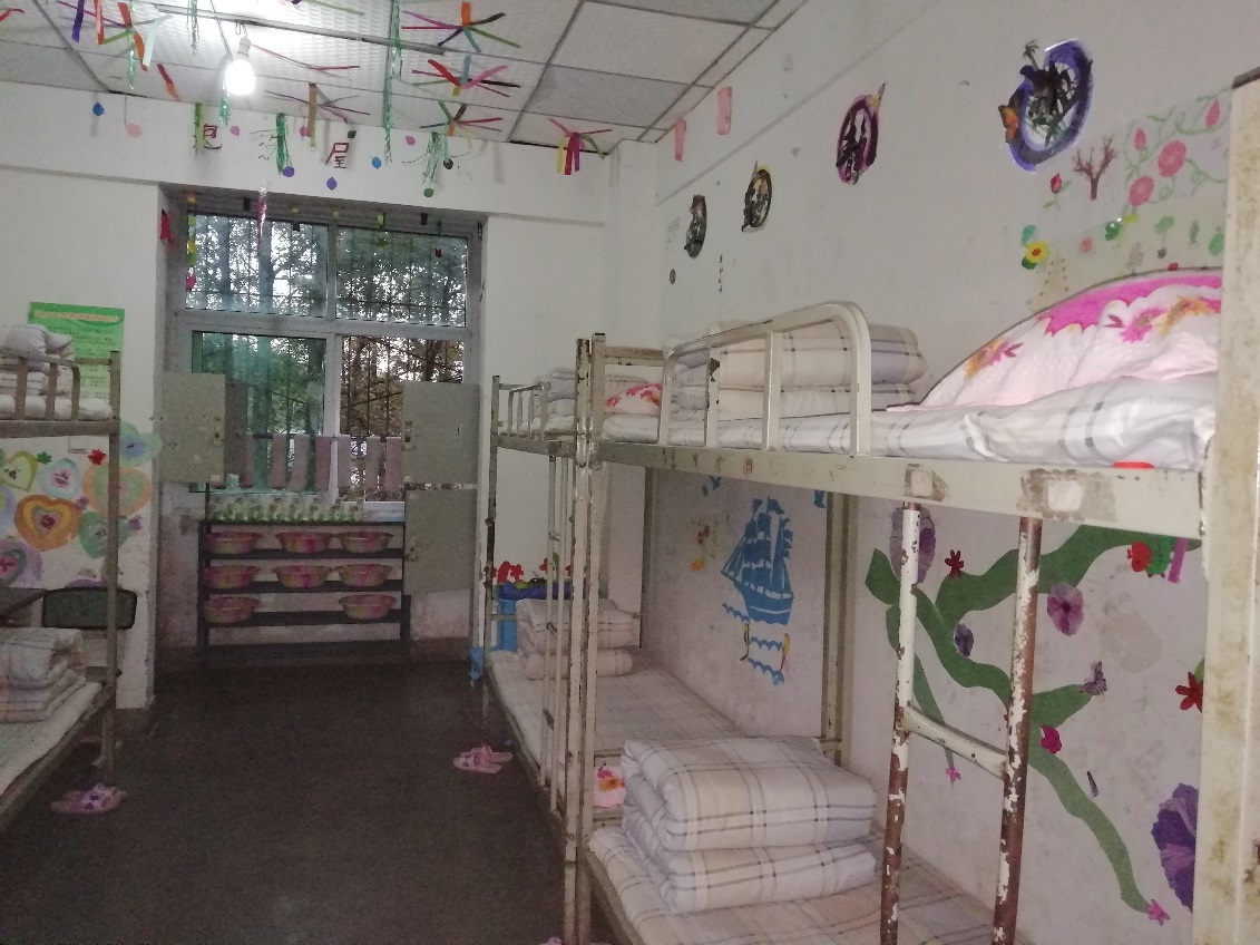 會(huì)后,袁秘書一行來到布拖縣拉達(dá)鄉(xiāng)中心校,在佛山派駐布拖任縣委辦副主任許建文、布拖縣教育和科學(xué)技術(shù)知識(shí)產(chǎn)權(quán)局局長胡子丹、拉達(dá)中心校校長吉玲英等陪同下,參觀了校舍。盡管宿舍條件簡陋,但床鋪整整齊齊,被子疊得方方正正,拖鞋、洗漱用品等也擺放有序。宿舍天花板上點(diǎn)綴著彩帶,墻上手繪或貼著各種圖案,彰顯了孩子們的愛美之心。宿舍門口的墻上,掛著寢室室長的鏡框,白底彩照下面,是“米色么小李”、“阿牛么惹扎”、“俄底么計(jì)生”、“帕查么拉克”等彝族名字,另一張寫著“樂學(xué)立德,行小以達(dá)”的校訓(xùn),校訓(xùn)下面寫著“一本書被打開了,你的心房將永駐陽光”。雖然天色漸暗,氣溫下降到十多度,但這句話卻讓人頓生溫暖。