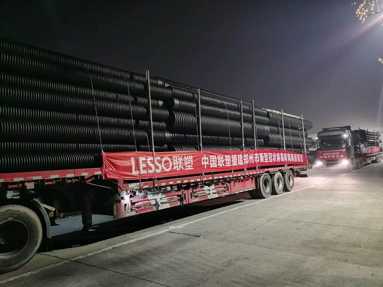 在得知鄭州將建河南版“小湯山”醫(yī)院的消息時,中國聯(lián)塑第一時間積極響應(yīng),與相關(guān)單位對接,集團下屬河南聯(lián)塑公司有關(guān)建設(shè)參與者取消休假、放棄與家人團聚的機會,倉儲、物流調(diào)度、工廠排產(chǎn),技術(shù)人員等聯(lián)塑人聞訊主動應(yīng)戰(zhàn)就位。聯(lián)塑集團快速調(diào)動下屬河南公司資源,全力支援鄭州市新型冠狀病毒隔離病房的建設(shè),提供項目建設(shè)所需的全部給排水管道,包括PE給水管、HDPE雙壁波紋管、PVC-U管等,滿足醫(yī)院建設(shè)需求的給排水工程所有管材管件供應(yīng)。